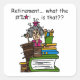 Jedermann, das ist sich zurückzuziehen oder bereits zurückgezogen wird, aber noch ist, also beschäftigt schätzt unser, was der Ruhestandsentwurf ist, der Stella kennzeichnet, die "was fragt, ist Ruhestand? "! Lustige Ruhestands-T - Shirts, -taschen, -karten, -aufkleber, -verzierungen, -mousepads, -Hoodies, -zeitschriften, -kissen, -andenken und -mehr!