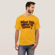 Was Sie Talkin" 'Kampf-T - Shirts. Orange, rot und gelb, mit großem Fragezeichen.