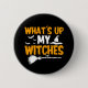 Dieses Design enthält orangefarbenen und weißen Text "What's up my hexches" in beliebter Typografie mit Fledermäusen, einem Hexenhut, Broomstick und Spinne als Dekoration. Perfektes Halloween-Geschenk. #halloween #Party #fun #witch #Redewendungen #holidays
