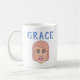 Erinnern Sie sich leicht daran, was Menschen trinken und wie sie es nehmen. Illustriertes Gesicht auf der einen Seite mit ihrem Namen, auf der anderen ein kleineres Gesicht mit dem, was sie trinken, wenn sie Zucker und Milch etc. nehmen.