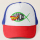 Ein Parodie-Design der Ichthys (Jesus Fish). Das Design der Ichthys Fische, mit dem Joker Fish aus einem Comic Buch Cartoon. WWJD in schwarzem Text ist in der Fischerei und frage: "Was würde Joker tun?"