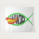 Ein Parodie-Design der Ichthys (Jesus Fish). Das Design der Ichthys Fische, mit dem Joker Fish aus einem Comic Buch Cartoon. WWJD in schwarzem Text ist in der Fischerei und frage: "Was würde Joker tun?"
