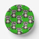 Süßes kleines Cartoon-Waschbär-Muster-Design auf grünem Hintergrund