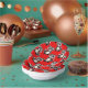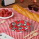 Süßes kleines Cartoon-Waschbär-Muster-Design auf rotem Hintergrund