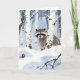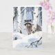 Waschbär winterliche Szene Grußkarte.