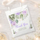 Schöne Babydusche mit Salbei-Grün und lila Blumenarrangements. Ideal für eine Babydusche. Die Wörter können geändert werden, um Ihre eigenen Angaben oder Anforderungen Anzug