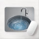 Wasser, das aus einem Waschbecken mit grauem Oberteil fließt.