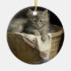 Wäsche- oder Spielzeit Grau-Kitten-Portrait Keramik Ornament
