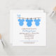 Niedliche Babykleidung, die an einer Wäscheleine hängt, auf dieser schicken Einladung.
