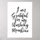 Brush Skript typografisches Poster: Gefühl dankbar, dass ich eine Waschmaschine besitzen, um meine Wäsche zu tun :) Zusätzlich zu diesem, fließendes Wasser und Klempnerei.