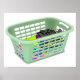 Der bescheidene Wäschekorb sah nie so gut aus wie dieses Design. Es ist ein grüner Wäschekorb, der Kunststoff mit einigen schön gefalteten Kleidern. Es macht tatsächlich ein gutes Haushaltsartikel-Design. Dieses Waschkorb-Design sieht auf diesem Poster großartig aus. Perfekt für sich selbst oder als Geschenk