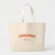 Wäscherei im Stil mit diesem Orange Retro Bold Custom Uni Name Wäsche Große Tote Beutel. Dieses Taschendesign zeigt maßgeschneiderte, fette Schriftzeichen in hellrosa und hellorangefarbenen Tönen. Dies ist ein perfektes Abschluss Geschenk für Uni Friseur.