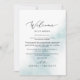 Diese Aquarelltöne sind für Hochzeitsfeiern und für eine moderne Hochzeitsfeier geeignet. Das einfache und klassische Design besticht durch eine pastellfarbene, hellblaue Farbe mit minimalistisch elegantem Stil. Auf der Vorderseite der Karte befindet sich ein Begrüßungsschreiben, auf der Rückseite der Karte befindet sich der Hochzeitstag. Diese Noten sind ideal für Hochzeiten in Urlaubsort und Begrüßungstaschen für Hotelgäste.