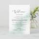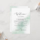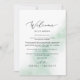 Diese Aquarellwaschgrün Hochzeitstitel und die Karten für die Tour sind perfekt für eine moderne Hochzeit. Das einfache und klassische Design besticht durch eine pastellgrüne Aquarellfarbe in minimalistisch elegantem Stil. Auf der Vorderseite der Karte befindet sich ein Begrüßungsschreiben, auf der Rückseite der Karte befindet sich der Hochzeitstag. Diese Noten sind ideal für Hochzeiten in Urlaubsort und Begrüßungstaschen für Hotelgäste.