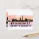 Die Postcard beinhaltet die Skyline-Silhouette der Washington DC Stadt mit Aquarellplakette und Koordinaten der Breiten- und Längenkarte