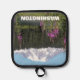 Mit diesem Topfhalter mit schwarzer Trimmplatte, die ein landschaftliches, fotografisches Bild von schneebedeckten Mount Rainier- und rosa Fireweed-Wildblumen im großen Nordwesten des Pazifiks von Washington bietet, können Sie Backbleche, Kochplatten und Kasserolen aus dem Ofen sicher handhaben. Ein tolles Reise-Souvenir-Geschenk! Wählen Sie den Trägerstil Ihres Potwarters aus.