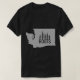 Grauer T - Shirt mit einem Design des Staat von Washington mit dem Wort "wurzeln", das darüber geschrieben ist. Ideal, um Ihren Nordweststolz auf den Pazifik zu zeigen.