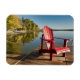 Dieses phantastische Getty Images Foto verfügt über einen roten Stuhl auf einem Dock an der Hütte mit Blick auf das Wasser.