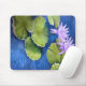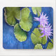 Zwei lila Wasserlilien mit den grünen und braunen Lilienauflagen in einem Pool des blauen Wassers. Dieses ist ein Ölgemälde, das ich auf Kommission tat. Ich habe einige Wasserlilienmalereien, die schließlich Produkte hier in meinem Speicher werden.
