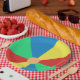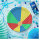 Dieses Ausrüstungsbeschreibungen ein großer runder Wasserball mit den gelben, roten, blauen und grünen Abschnitten.