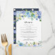 Wassercolor Blue Hydrangea Garland Wedding Menükarte