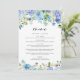 Whimsikale und elegante Blumenkarte, perfekt für Hochzeiten, Babyduschen, Brautpartys, Gartengarten Party, Abschlüsse, Geburtstage und ähnliche Veranstaltungen. Diese Karte mit Blumenkranz bietet lila und blaue Hydrangeas, Peonies und Blattwerk.