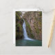 Schöner Wasserfall umgeben durch Klippen und Sträuche im tiefen Wald.