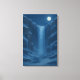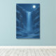 Eine atemberaubende Winternacht von einem riesigen, gefrorenen Wasserfall, der mitten in der Kaskade aufgehängt ist, umgeben von mächtigen eisigen Klippen, die unter dem sanften Licht des Mondes leuchten. Eine ruhige und dennoch kraftvolle Szene, die die noch immer Schönheit der gefrorenen Natur erobert.