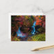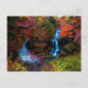 Dies ist ein Bild von Wasserfällen umgeben von bunten Bäumen auf einer Postkarte.