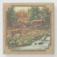 Whitetail macht und buck durch den Wald entlang eines Wasserfalls von Felsen und Wasserfällen. Realistische Kunstwerke aus einer originalen Ölmalerei von Crista S. Forest und Wildtieren.