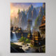 Wasserfall und Berge des Wikingdorf | Art der AI Poster