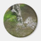 Dieser Magnet zeigt ein Foto eines kleinen Wasserfalls, der in einen Fluss sickert und zeigt, wie das Wasser beim Eintritt in den Fluss sprudelt. Das Wasser fließte nach einem Sturm in den Fluss.