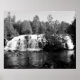 Original Schwarz-Weiß-Foto von schönen Flussschnellen und Wasserfällen über den Felsen und in das Wasser unten auf einem 16x20 Poster gedruckt. Das Foto wurde während einer Kamerafahrt durch den UP von Michigan im Frühjahr 2021 aufgenommen. Ich entschied mich für einen superschnellen Verschluss anstelle einer langen Belichtung, weil ich das Aussehen des Wassers Liebe habe, wenn es eingefroren ist und die Details der Tröpfchen und das Spritzen zeigt. Ein BohippianFinch Originalfoto.