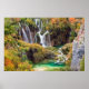 Landschaftlicher Wasserfall in wunderschöner, malerischer Herbstkulisse des Nationalparks der Plitvicer Seen in Kroatien.