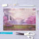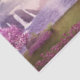 Gewebepapier mit einem landschaftlichen Bild eines friedlichen lila Sees. Umgeben von üppigen Kirschbäumen und Wasserfällen.