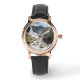 Uhr, Klassische Damenuhr mit schwarzen Lederarmband