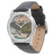 Uhr, Klassische Damenuhr mit schwarzen Lederarmband
