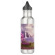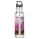 Wasserflasche mit landschaftlichem Bild eines friedlichen lila Sees. Umgeben von üppigen Kirschbäumen und Wasserfällen.