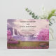 Hochzeitseinladung mit einem landschaftlichen Bild eines friedlichen lila Sees. Umgeben von üppigen Kirschbäumen und Wasserfällen.