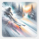 Wasserfarbe Abstrakt Downhill Skier Quadratischer Aufkleber