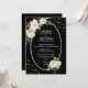 Diese Vintagen antiken, weißen, blumengeschmückten Hochzeitsfeiern können Sie ganz individuell gestalten. Schwarzer Hintergrund und Weiß mit goldfarbenem Imitat-Folienring. Handgemalte, weiße Blume (Rose) mit grünen Blätter in Kranzform. Rückseite der Karte hat Braut und Bräutigam Monogramme / Initialen. Bearbeiten von Karten - Fügen Sie Ihre Informationen hinzu (Text kann auf jeden Schriftart, jede Größe und Farbe geändert werden). Ideal für jedes Thema oder jede Jahreszeit Hochzeitsfeier.
