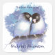 Wasserfarbe Blau Lovebirds Lounge Vögel Buchzeiche Quadratischer Aufkleber