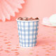 Wasserfarbe Blau und Weiß Gingham Pappbecher