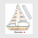 Wasserfarbe Blaue Streifen Sailboat Personalisiert Aufkleber