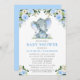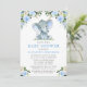 Wasserfarbe Blue Floral Baby Dusche Elephant Einladung