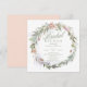Schöner Brunch-Einladung mit einem grünen, blumengeschmückten Kranz mit einem koordinierenden Rücken für eine besondere Touch.