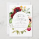 Boho Blumenschluck und sehen Einladung mit Peony und Anemone Blume, Grün und Federn in Akzenten von burgundischen Pflaumen und rot Rosa individuell anpassbar an Ihre Bedürfnisse.