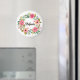 Anpassbarer Blumenmagnet. Es ist mit einem Blumenkranz in Aquarellfarben mit rosa und orangefarbenen Blume, Grünpflanzen, Lavendel und Federn ausgestattet. Dieser Blumenmagnet ist ein personalisiertes Geschenk.
