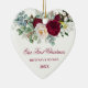 Modernes elegantes Watercolor Burgundy Marsala Bloral Couple Heart Ornament umfasst Pfannkuchen, Eukalyptus Blätter und andere schöne grüne.