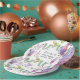 Auf diesen modernen Tellern aus Papier zeichnen sich illustrierte Kakteen und Sukkulente in Aquarellfarbe aus. Wenden Sie sich zum Anpassen von Elementen und benutzerdefinierten Bearbeitungen an Designer LeahG.